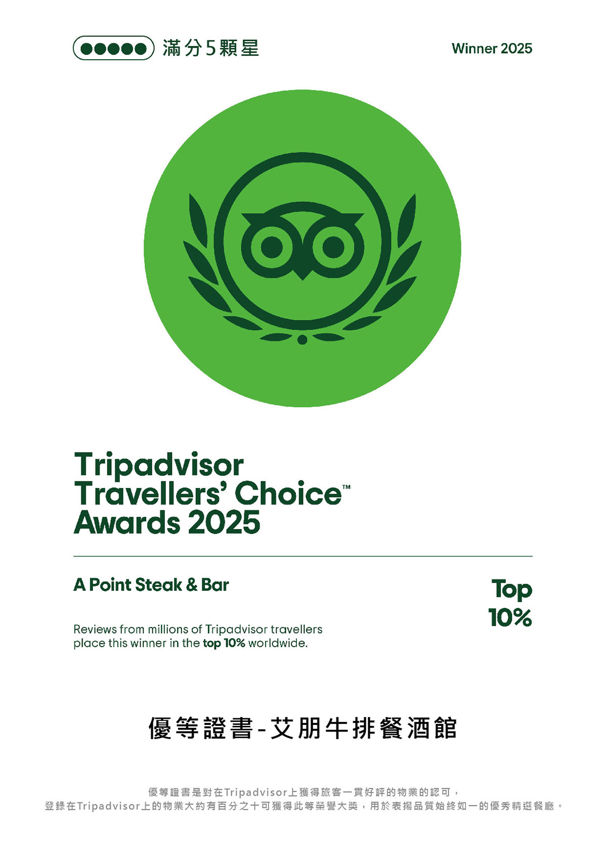 台北牛排館A point 的法文意思為完美剛好的烹調 從味蕾開始 重拾美味感動